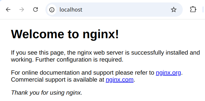 打开浏览器并访问 http://localhost 看到下图所示的 Nginx 欢迎页面则说明安装并启动成功。