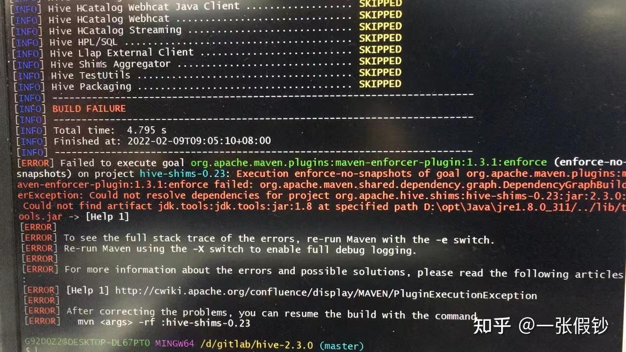 Windows10下Maven编译Hive2.3.0找不到tools.jar问题 发表于 2025-10-27 更新于 2025-10-28 分类于 大数据 , 数据仓库 阅读次数: Changyan: 详细报错信息如图: 在Hive源代码目录下搜索tools.jar发现没有指明特定目录的配置。如下: 怀疑是Maven配置或者依赖包中存在指定的情况。在.m2目录下搜索: 从上面的搜索可以看到很多从${JAVA_HOME}下查找该包的配置。检查环境变量${JAVA_HOME}发现未配置,错误原因就出在这里。 配置JAVA_HOME后问题解决。