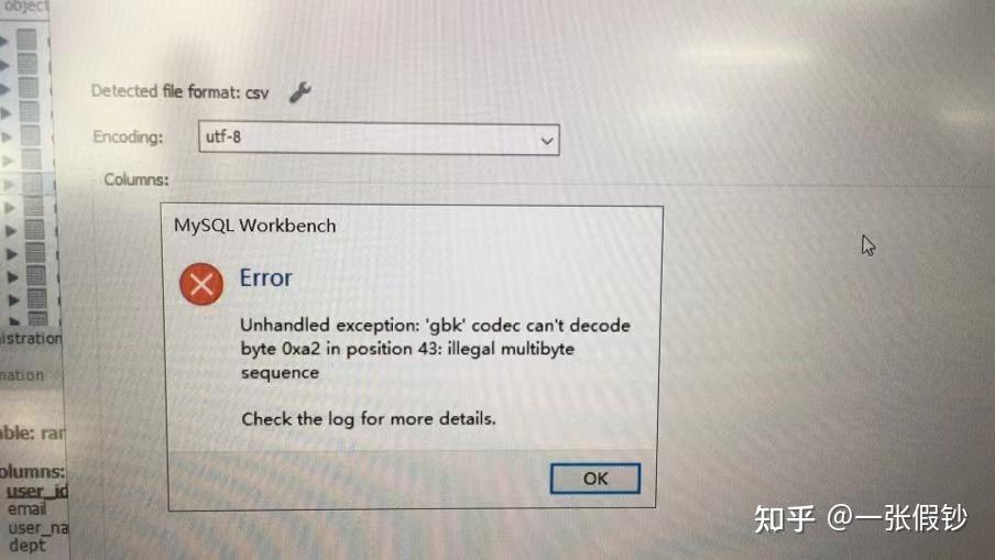 | 1 | Unhandled exception: 'gbk' codec can't decode byte 0xa2 in position 43; illegal multibyte sequence |