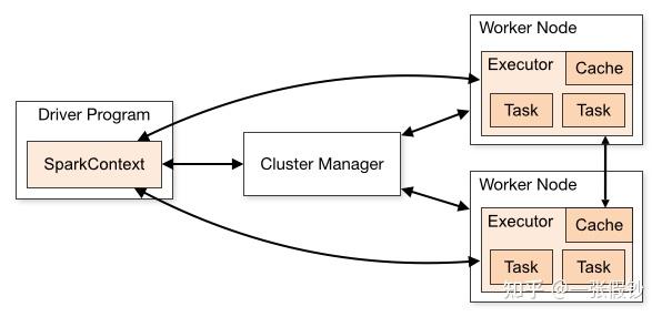 Spark架构 发表于 2025-10-28 分类于 大数据 , 分布式计算 阅读次数: Changyan: Spark架构非常简洁。简洁的架构是良好开放性、兼容性的基础。 驱动器(驱动进程):运行main()函数,负责三件事。 维护Spark应用程序相关信息 回应用户程序或输入 分析任务并分发给若干执行器处理 执行器:执行驱动器分配的实际计算工作,负责两件事。 执行驱动器分配的代码 报告执行器的计算状态给驱动器