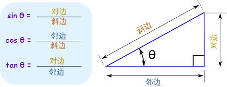 正弦、余弦和正切 发表于 2025-10-29 分类于 数学 , 几何学 阅读次数: Changyan: 正弦、余弦和正切是三角法里的主要函数,它们是基于一个直角三角形而建立的。在探索这些函数之前,我们先给三角形的每条边一个名字: “对边” 是在角 θ 的对面 “邻边” 是在角 θ 的旁边 “斜边” 是长的一边 正弦(sine)、余弦(cosine)和正切(tangent)(英语符号简写为 sin, cos 和 tan)是直角三角形边长的比: